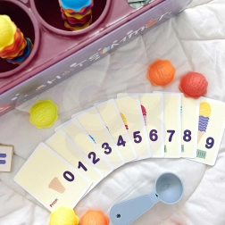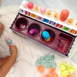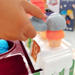 Deveniți vânzător de înghețată cu setul care nu doar distrează, dar și educă. Copiii vor învăța să numere, să recunoască culorile și să rezolve sarcini matematice simple cu ajutorul cardurilor de comandă. Setul permite jocuri de rol, ceea ce ajută la dezvoltarea abilităților de comunicare și reduce stresul situațiilor cotidiene.