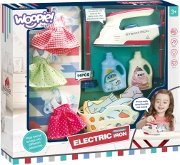 Set de călcat pentru copii de la brandul Woopie va aduce copilului tău multă distracție în joaca de-a mică gospodină. Conține fier de călcat, masă de călcat, coș de rufe și incl. umerașe și haine pentru păpuși, toate fiind sigure și adaptate nevoilor copiilor.