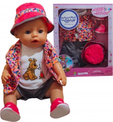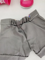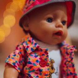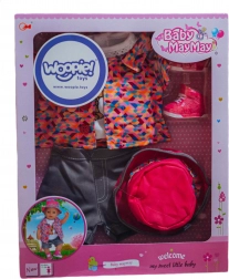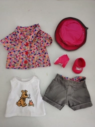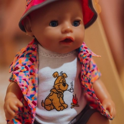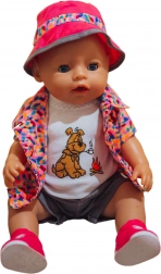 Acest set colorat de haine pentru păpuși este un accesoriu grozav pentru orice colecție a copiilor. Include un tricou cu cățel adorabil, o jachetă colorată, o căciuliță, pantaloni scurți și botoșei – toate asortate în culori vesele. Datorită execuției precise, hăinuțele au un aspect realist și sunt ușor de îmbrăcat.