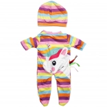 Setul stilat de hăinuțe cu motiv unicorn transformă orice păpușă într-un bebeluș adorabil, pregătit pentru joacă și alint. Dungile colorate și căciulița asortată atrag privirea din prima, iar croiala comodă ușurează îmbrăcarea chiar și pentru copiii mai mici. O alegere excelentă pentru cadou – ambalajul are un agățător practic pentru transport facil.