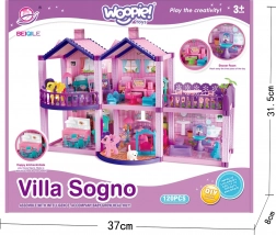 Căsuța magică din plastic pentru păpuși de la WOOPIE este o vilă pe două niveluri, cu accesorii bogate și 120 de piese pentru o joacă creativă fără sfârșit. Setul include 2 ponei, un căţel, mobilier și decorațiuni. Nu lipsesc salonul, bucătăria cu sufragerie, două dormitoare, baia și balconul. Execuție de calitate, materiale sigure și culori vii care vor încânta orice copil de la 3 ani.