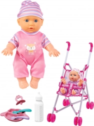 Prima păpușă Bobas cu cărucior și set de hrănire de la brandul WOOPIE este alegerea ideală pentru un copil care dorește să imite adulții în îngrijirea copiilor. Păpușa emite sunete precum mama, tata, plâns sau râs, adăugând realism jocului. Copilul poate hrăni păpușa sau o poate duce la plimbare în căruciorul inclus.