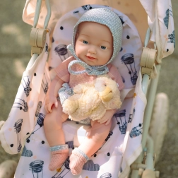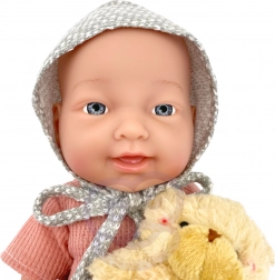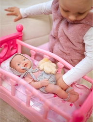 Păpușa imită ușor un bebeluș real: mânuțele și piciorușele sunt mobile, iar suzeta se introduce confortabil în guriță pentru liniștire și joc de adormit.