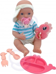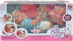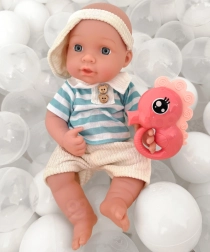 Acest set de îngrijire este o alegere excelentă pentru copiii care adoră să imite adulții și să-și dezvolte fantezia. Păpușa realistă are un corp moale, plăcut la atingere și membre și cap mobil, astfel încât poate fi ușor așezată sau culcată. Datorită hăinuțelor ușor de scos, copiii își exersează motricitatea fină și îngrijirea bebelușului.