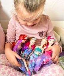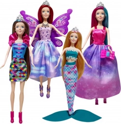 Setul conține patru păpuși prințese magice cu ținute și accesorii unice, care susțin imaginația copiilor.