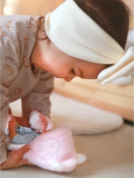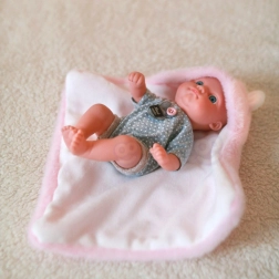 Păpușa este echipată cu o pătură roz care poate fi transformată în cort, port-bebe sau folosită pur și simplu ca o plapumă ideală pentru zilele reci. Pătura are urechiușe, ceea ce face păpușa și mai adorabilă și unică.