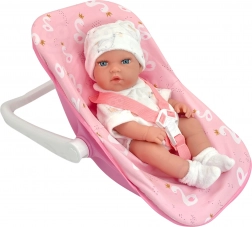 WOOPIE Royal păpușă pentru copii este un companion ideal pentru jocurile tale! Păpușa este îmbrăcată într-un ansamblu frumos, inclusiv șosete și caciuliță. Setul include un purtător roz fermecător. Copiii își dezvoltă creativitatea și învață empatia prin jocul de rol.