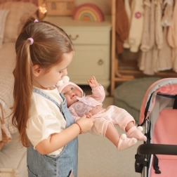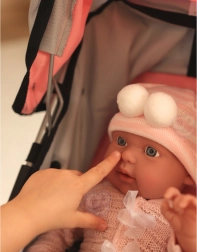 Mâinile și picioarele se pot ajusta ușor în diverse poziții. Copiii pot îmbrăca păpușa, o pot purta, o pot așeza în cărucior și se pot juca de-a îngrijirea.