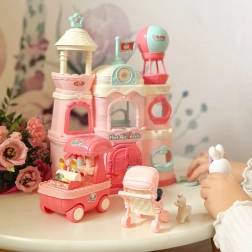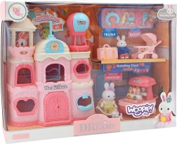 Descoperă fermecătoarea Vila Iepurașilor WOOPIE – un castel colorat cu trei etaje, plin de fantezie și aventură. Copiii vor adora deschiderea cu cheiță, figurinelor drăgălașe de iepurași și cățel, leagănul funcțional, ferestrele și balonul de pe acoperiș. Setul bogat de accesorii, inclusiv căruciorul roz, căruțul cu înghețată și valiza, dezvoltă jocul creativ și distrează ore în șir.