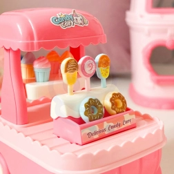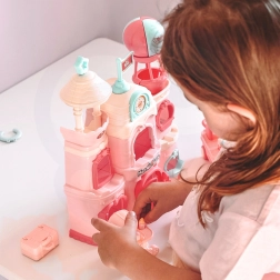 - Set bogat de accesorii: cărucior, căruț cu înghețată, valiză și altele.