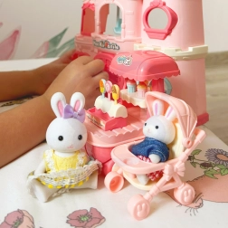 Copiii își creează propriile povești cu iepurașii, cățelul și accesorii precum căruciorul sau căruțul cu înghețată – ideal pentru jocul creativ.