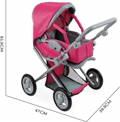 Cărucior roz stilat pentru păpuși WOOPIE ROYAL va încânta orice mică îngrijitoare. Oferă utilizare 3‑în‑1 – landou, scaun sport și scoică/geantă detașabilă. Are mâner reglabil pentru diferite înălțimi ale copiilor, roți silențioase pentru o deplasare lină, copertină și cadru pliabile și un coș practic pentru mărunțișuri.