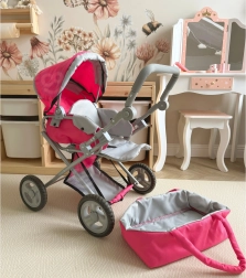 - Cărucior pentru păpuși 3‑în‑1 (landou, sport, scoică/geantă)
