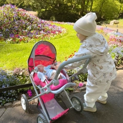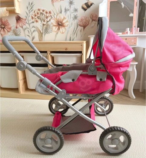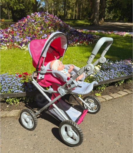 Căutați un cărucior pentru păpuși care crește odată cu copilul și stimulează imaginația în jocurile de familie? WOOPIE ROYAL în combinație delicată roz‑gri oferă detalii realiste și o construcție solidă, dar ușoară, pentru plimbarea sigură și confortabilă a păpușilor preferate.