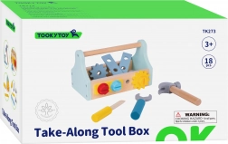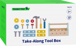 Drăgălașa cutie din lemn cu unelte de la TOOKY TOY este ideală pentru micii meșteri de la 3 ani. Setul cuprinde 18 piese în culori pastelate – ciocănel, șurubelniță, cheie, șuruburi, piulițe, roți dințate și plăcuțe. Piesele se pot fixa ușor în orificiile din cutie, iar după joacă pot fi depozitate comod în interior. Realizat din lemn de calitate, cu culori netoxice, conceput pentru a dezvolta motricitatea fină, creativitatea și coordonarea mână–ochi.