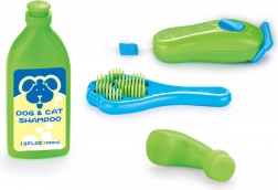 Peria, șamponul, dozatorul și mașinuța de tuns susțin jocul de rol creativ și îi învață pe copii bazele igienei și îngrijirii animalelor de companie.