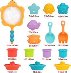 Setul de jucării de la Woopie va fi partenerul perfect pentru distracția copilului tău în cadă sau în nisip. Acesta conține: