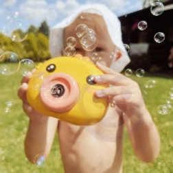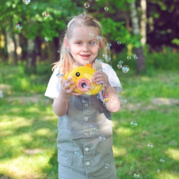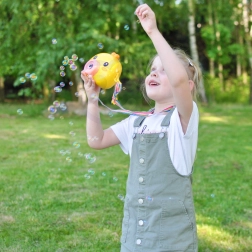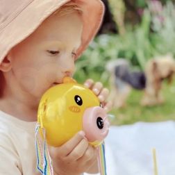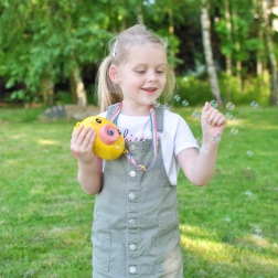 Mașinuța cu bule puișor WOOPIE este jucăria ideală pentru copiii de la 3 ani. Operare ușoară cu buton On/Off, producție bogată de bule și o construcție ușoară o fac partenerul perfect pentru grădină, teren de joacă și petreceri pentru copii.