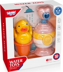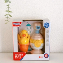 Setul de jucării pentru baie Woopie este conceput pentru a aduce distracție și dezvoltare în timpul băii. Rața plutitoare inspiră la joc creativ și cănuța de turnat le permite copiilor să observe curgerea apei. Dozatorul de săpun transformă săpunul obișnuit într-o spumă moale, ușoară, ceea ce face spălarea mai distractivă și mai riguroasă.