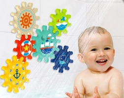 Datorită ventuzelor, roțile dințate pot fi ușor fixate pe pereții băii, transformând în fiecare moment petrecut în baie într-o sursă de distracție și învățare.