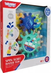 Aduceți multă distracție în baie cu setul de 6 jucării acvatice distractive de la marca Woopie. Acest set include roți dințate colorate în două dimensiuni, care pot fi ușor fixate cu ajutorul ventuzelor pe faianță, cadă sau cabină de duș. Rotirea unei roți pune în mișcare întreaga construcție, stimulând dezvoltarea gândirii logice și a coordonării.