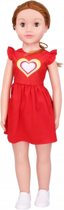 Păpușa mare care merge, cu înălțimea de 70 cm, îi va încânta pe copiii de la 3 ani prin aspectul realist și elementele interactive. Are ochi clipitori, este ușoară și ușor de manevrat și, datorită materialelor de calitate, rezistă mult timp. Rochița roșie cu inimioară îi oferă păpușii un aspect adorabil pe care copiii îl vor îndrăgi.