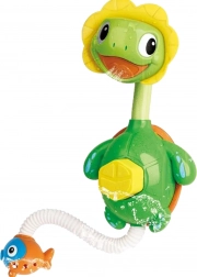 Apăsați burtica și urmăriți cum din căpșorul țestoasei țâșnește un jet vesel de apă. Mini duș ideal pentru o baie plină de voie bună.
