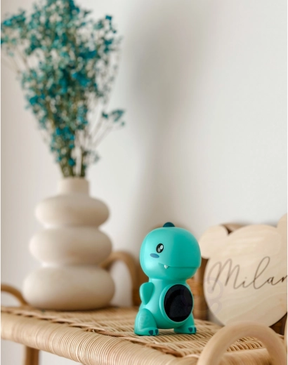 Bucurați-vă de o baie liniștită, fără griji. Termometrul pentru copii WOOPIE Dino măsoară cu precizie temperatura apei și a aerului și afișează totul pe un ecran electronic clar. Iluminarea color vă indică instantaneu dacă apa este prea rece, potrivită sau prea fierbinte.