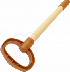 Tija lungă, detașabilă, ușurează controlul, iar cele patru roți asigură stabilitate și o mișcare lină pe podea și pe trotuar.