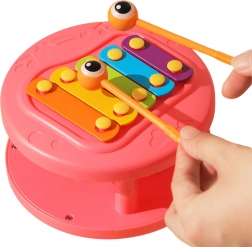 - șnur rezistent, xilofon integrat, ochi–bețe detașabile, mică mașinuță
