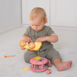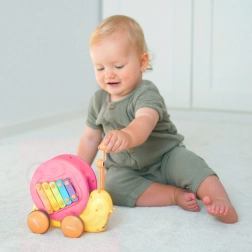 Cu melcul WOOPIE, copiii descoperă lumea muzicii, a mișcării și a relației cauză-efect. Pot ciocăni clapele colorate ale xilofonului cu ochii–bețe detașabile, pot trage melcul de șnurul rezistent sau îl pot împinge și urmări cum pornește. Culorile vii și designul jucăuș susțin percepția vizuală și minute îndelungate de distracție creativă.