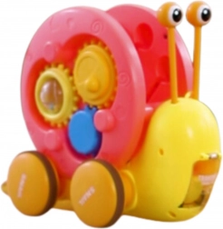 Jucărie distractivă și educativă pentru cei mici: melcul colorat cu șnur îmbină jocul de tras, xilofonul cu „ochi” bețe detașabile, angrenaje/elemente senzoriale și mașinuța cu lansare. Susține motricitatea, gândirea logică și relația cu muzica prin diferite moduri de joc.