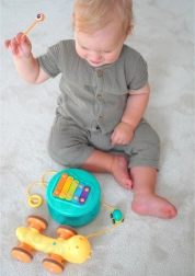 Jucăria îi conduce natural spre descoperirea muzicii, a cauzelor și efectelor și susține jocul creativ și interacțiunea în familie. Construcția durabilă rezistă folosirii intense de către copii și devine rapid un companion îndrăgit, acasă sau în călătorii.