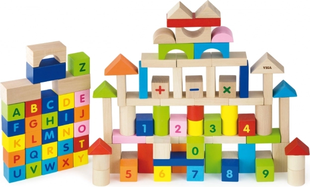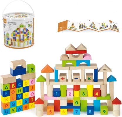 Acest set variat de 100 de cuburi din lemn VIGA, inspirat de principiile MONTESSORI, aduce copiilor bucuria descoperirii literelor, cifrelor și a sarcinilor aritmetice simple. Datorită formelor diverse – cuburi, cilindri, arcade sau acoperișuri – copiii pot construi orașe, turnuri și construcții imaginative, exersând discret alfabetul, număratul și culorile.
