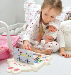 Tabla de desen magnetică WOOPIE este un instrument ideal pentru dezvoltarea creativității copilului și a abilităților motorii. Setul include un pix magnetic și 50 de butoane magnetice colorate, care permit crearea de modele originale conform imaginației copilului. Butoanele sunt robuste și durabile, iar organizarea lor este intuitivă și ușoară. Această jucărie nu este doar o distracție, ci și un instrument excelent pentru educație și dezvoltarea abilităților manuale, concentrării și imaginației.