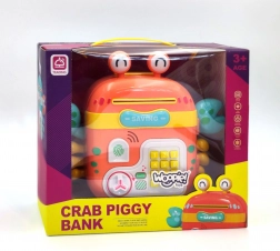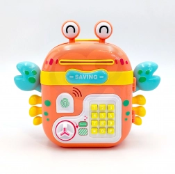 Acest crab colorat este mai mult decât o pușculiță – este un seif interactiv, pușculiță și rucsac pentru copii, toate într-unul. Copiii își pot depozita monede, bancnote și mici comori, pot seta propria parolă și se pot bucura de elemente realiste precum tastatura cu butoane, imitația de cititor de amprentă și rotița pentru deschidere.
