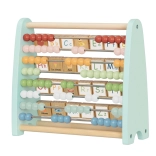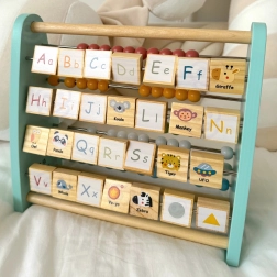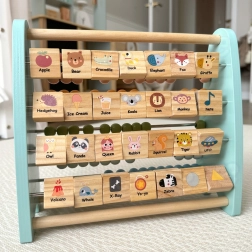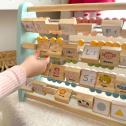 Abacul educațional de lemn și alfabetul oferă o combinație unică de distracție și educație pentru copii. Pe o parte, copiii pot învăța matematica de bază pe bile colorate, susținând abilitățile matematice fundamentale. Pe cealaltă parte, oferă o placă de alfabet cu blocuri rotative ce conțin litere mari și mici, completate de imagini, făcând învățarea alfabetului o activitate distractivă și captivantă.