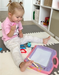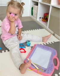 Descoperiți un mod ludic de a învăța și de a dezvolta motricitatea fină. Tabla magnetică Woopie le permite copiilor să exerseze în siguranță scrierea literelor și a cifrelor, să încerce primele desene și să-și exprime imaginația – fără mizerie și fără hârtie. Printr-o singură mișcare a glisorului, desenul se șterge și distracția poate începe din nou.