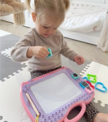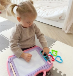 Tabla magnetică de desen de la Woopie aduce distracție nesfârșită pentru copiii de la 3 ani. Susține scrisul, desenul și dezvoltarea motricității fine, a imaginației și a creativității. Datorită glisorului pentru ștergere, copilul poate crea ușor o imagine nouă în câteva clipe. Include stilou magic, 4 ștampile și 4 șabloane pentru o creație și mai variată, plus mâner confortabil pentru transport.