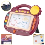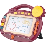 - suprafață magnetică de desen, glisor pentru ștergere, 5 butoane sonore (efecte, cântece, sunete electronice, alfabet englez, tobă)