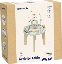 Descoperă măsuța activă Montessori din lemn TOOKY TOY, care, datorită activităților variate, îi va captiva pe copii pentru mult timp. Susține poziția în picioare, dezvoltă motricitatea fină, coordonarea mână–ochi, gândirea logică și creativitatea. Include labirint motric, sortator de forme, roți dințate și trenuleț. Fabricată din lemn cu vopsele netoxice.