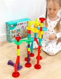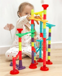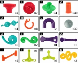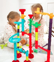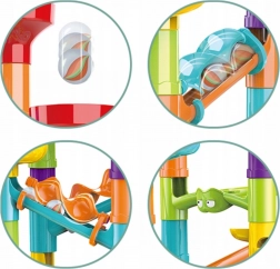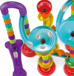 Diverse tuburi, curbe, spirale, pâlnii și stâlpi permit construirea de fiecare dată a unei piste cu bile noi și amuzante. Construiți după ghid sau creați propriile trasee ingenioase.