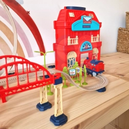 Locomotiva cu efecte sonore adaugă jocului atmosfera unei căi ferate reale. Necesită baterii AAA (nu sunt incluse).