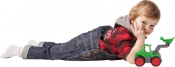 Datorită roților moi Soft, tractorul este blând cu podelele din interior și, în același timp, face față suprafețelor neregulate din exterior. Copiii pot încărca și răsturna materialul cu ușurință, dezvoltând motricitatea fină și imaginația. Produsul este proiectat cu atenție la siguranță, ergonomie și durabilitate.