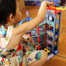 Garajele pe mai multe niveluri, coborârile rapide și elementele funcționale de joc transformă camera copilului într-un oraș viu. Parcarea Woopie este ideală pentru micii fani ai mașinilor – de la intrarea cu rampă, prin liftul acționat manual, până la heliport și zona de service. Datorită setului bogat de accesorii, copiii își exersează coordonarea și își dezvoltă imaginația.