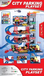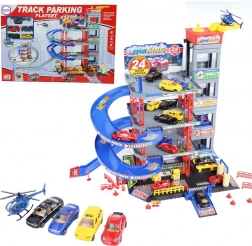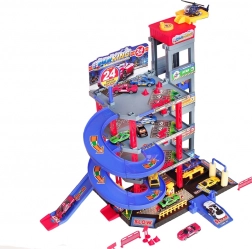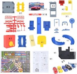 Pachetul include 4 mașinuțe metalice, un elicopter, indicatoare rutiere, conuri și autocolante. Doar asamblezi și joaca poate începe imediat.