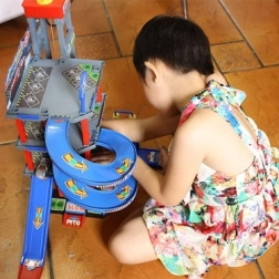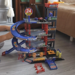 Rampele lungi și răsucite permit mașinilor să coboare rapid și lin între etaje. O combinație grozavă de viteză, îndemânare și distracție pentru micii piloți de curse.