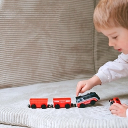 Magnetii puternici, dar siguri, le permit copiilor să atașeze și să detașeze ușor vagoanele. Asamblarea trenului este rapidă și distractivă.