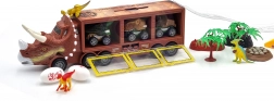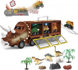 Camionul nostru cu dinozauri este cu adevărat incredibil și ideal pentru orice copil care iubește dinozaurii și mașinile. Copilul poate plonja în lumea fantastică a dinozaurilor și poate trăi multe aventuri. În interiorul marelui camion se regăsesc 3 mici mașinuțe dinozaur. Setul include și un lansator care adaugă la distracție. E suficient să plasezi, apeși și lansezi!