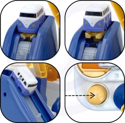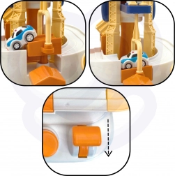 Atrage mașinuța și o transportă pe podul rabatabil, care poate fi ridicat și coborât.